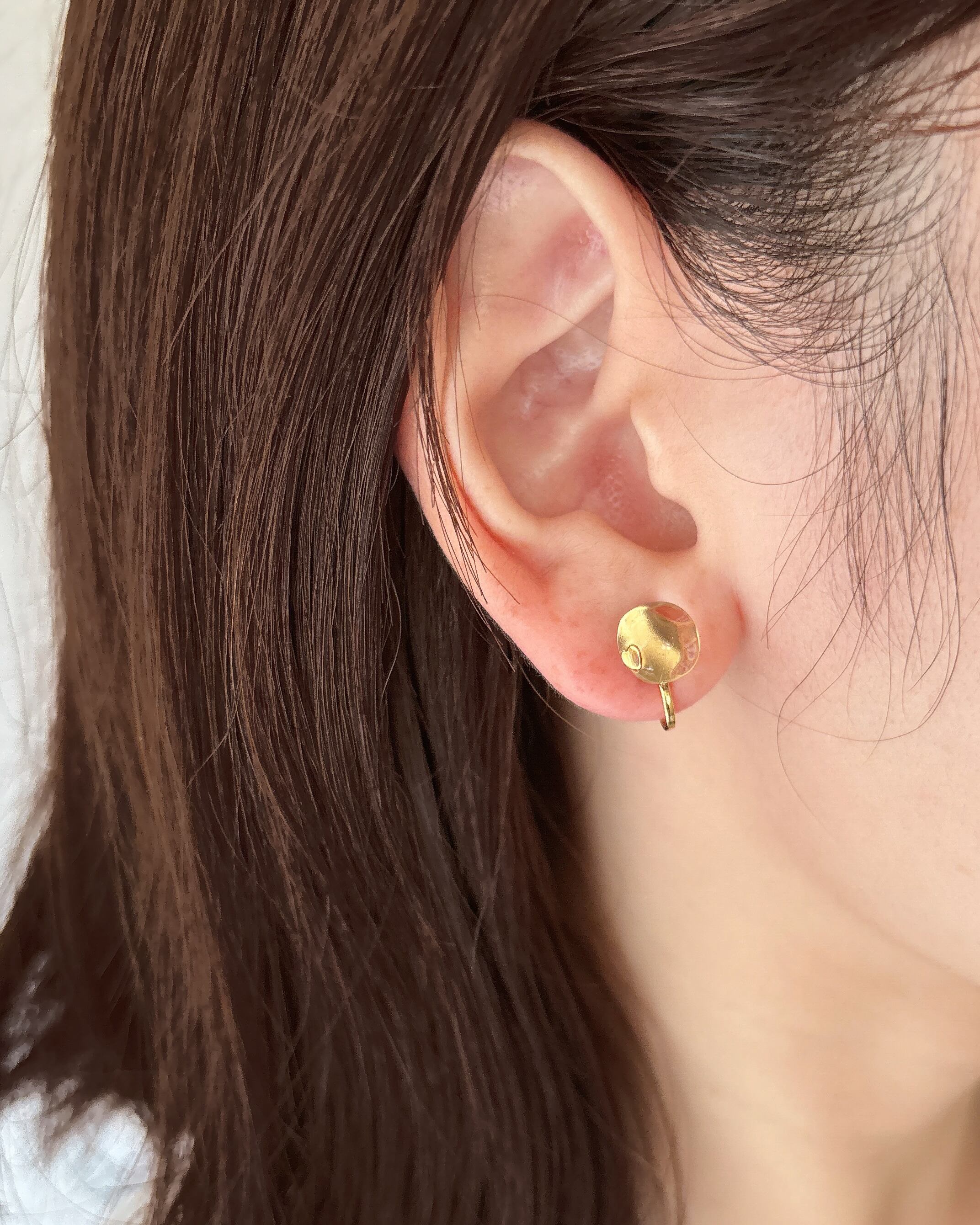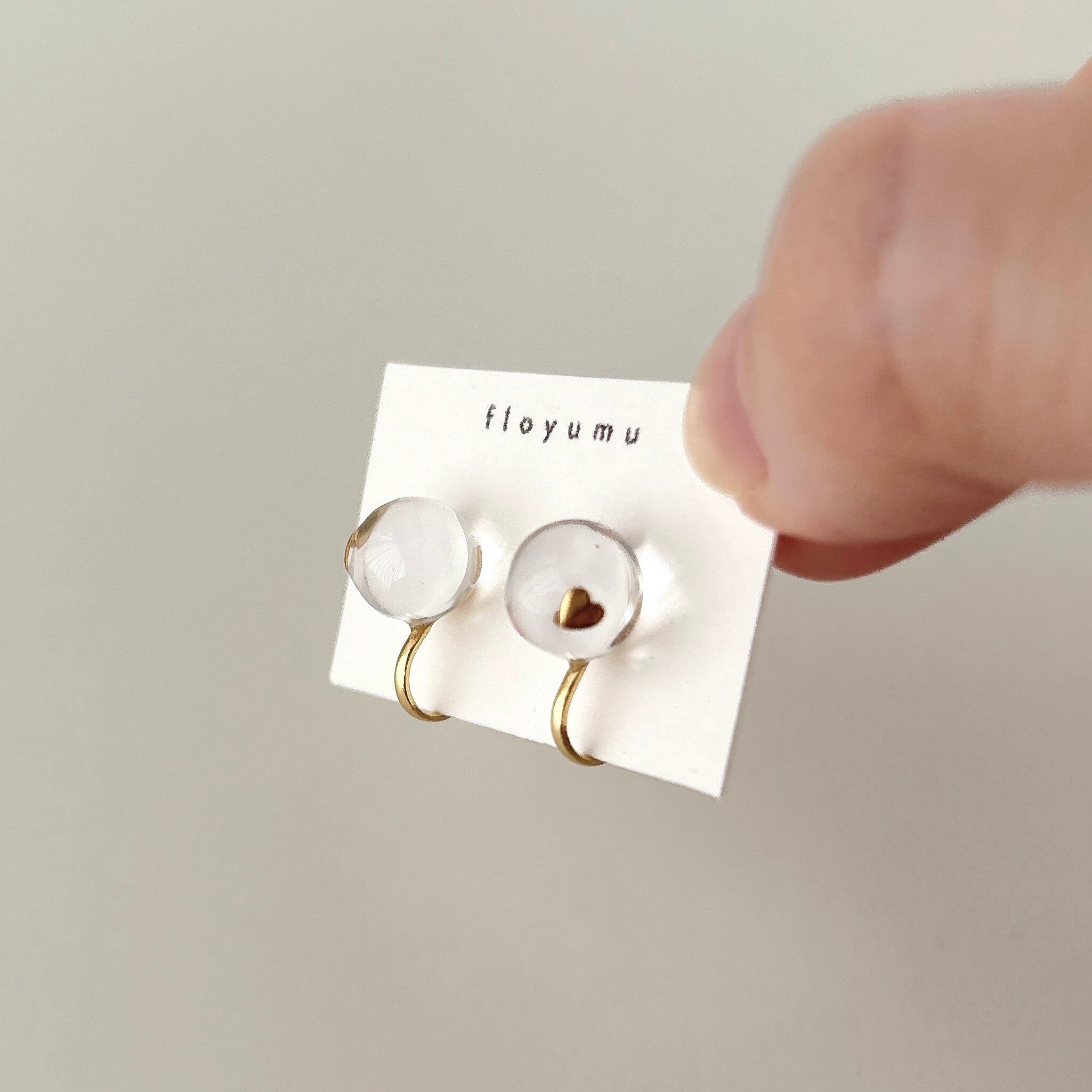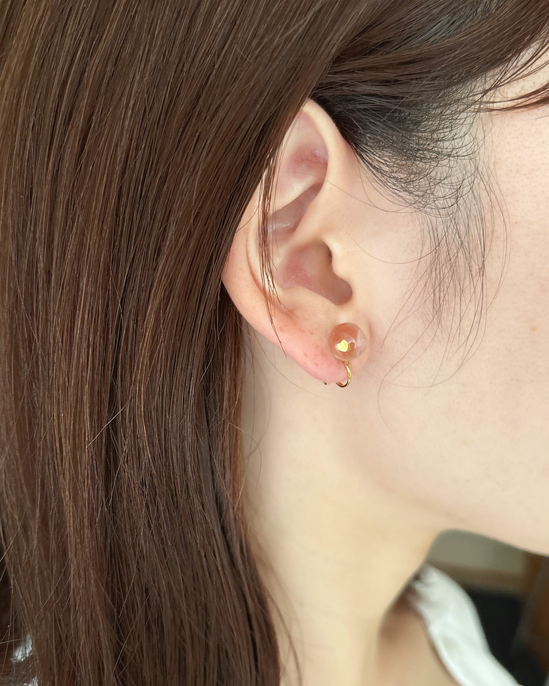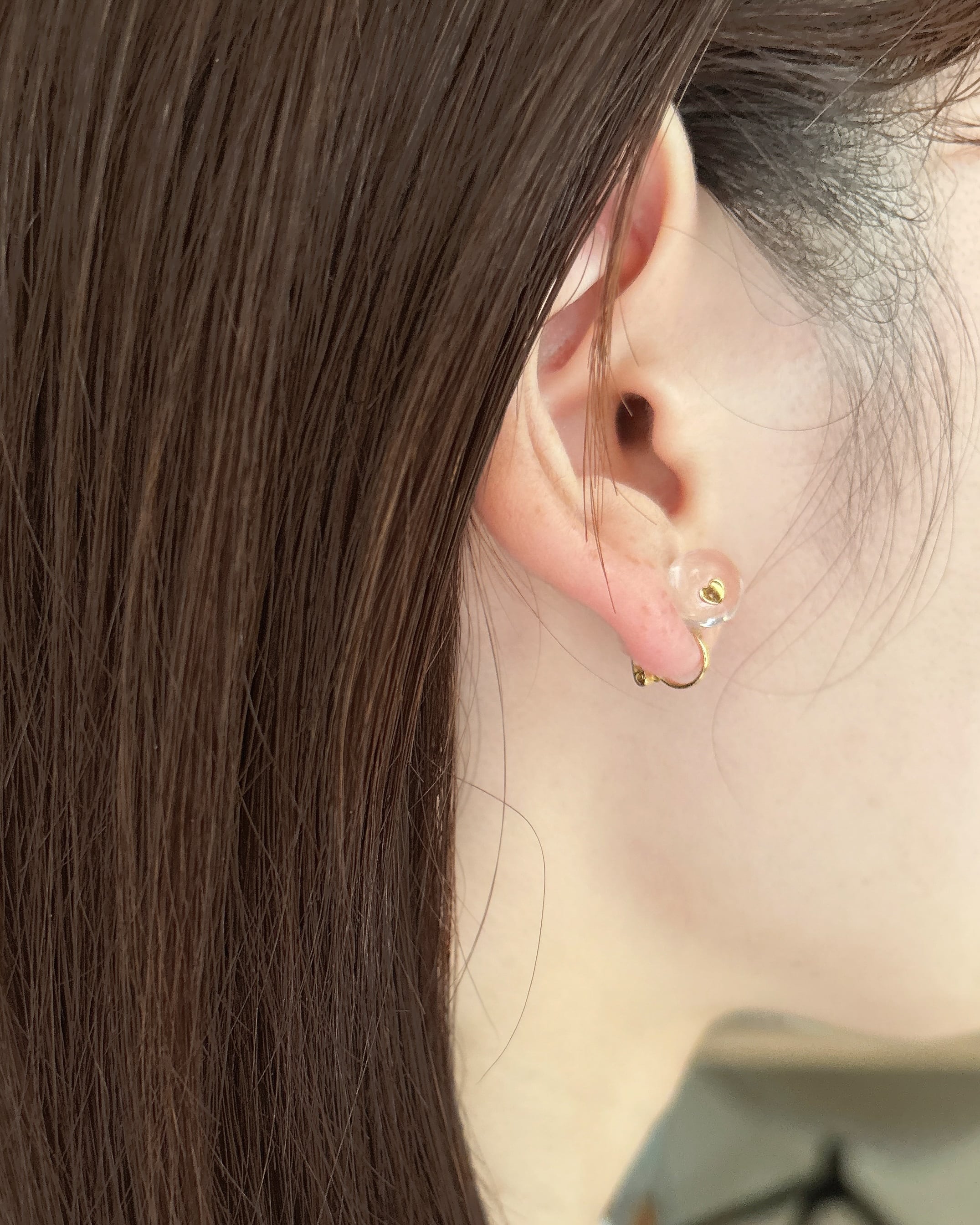 クリアの透明感とゴールドの輝きが角度によって変化する、シンプルですが存在感のあるイヤーアイテムです