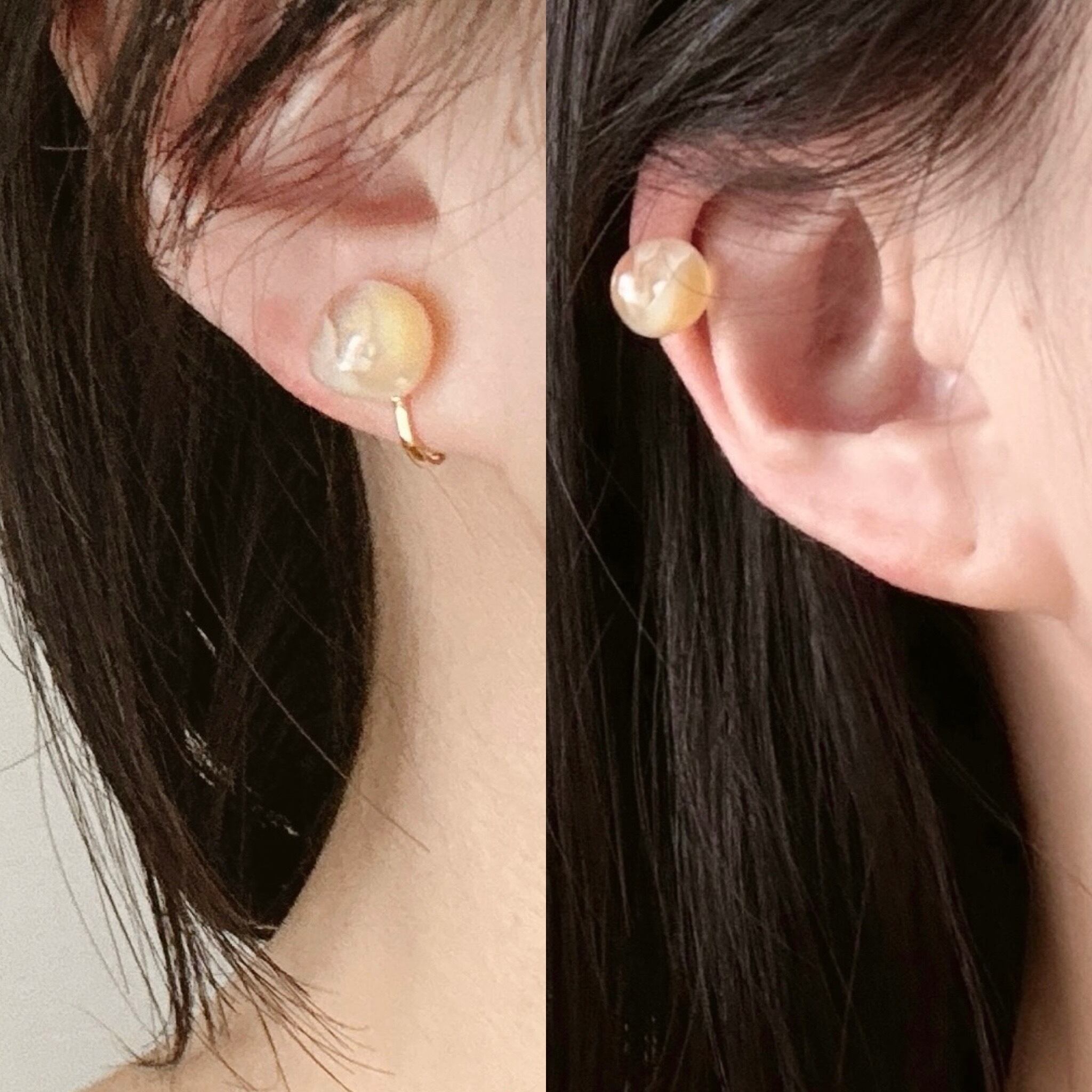 まんまるではない歪な球体の、おいしそうな柔らかな色みのピアス・イヤリング
