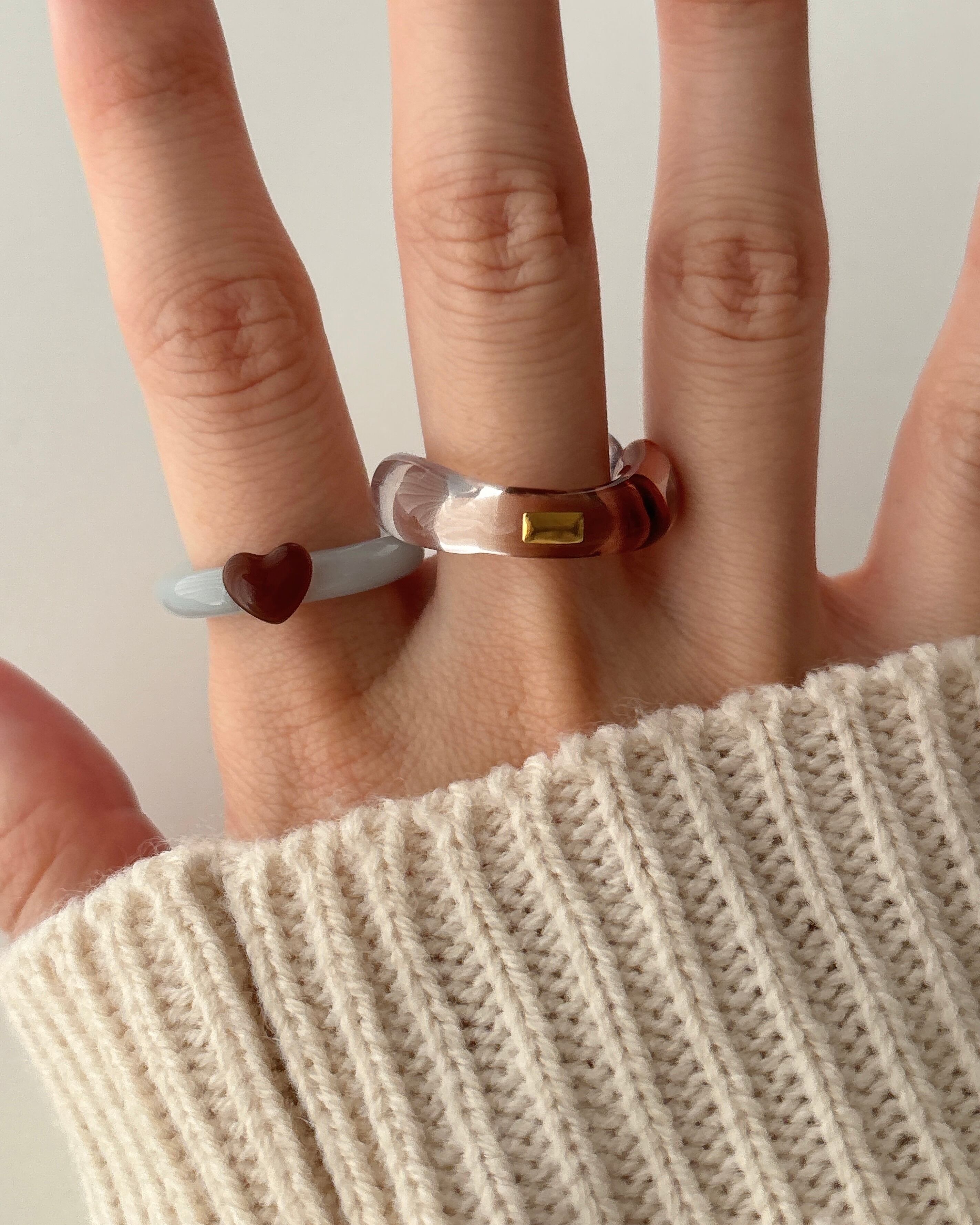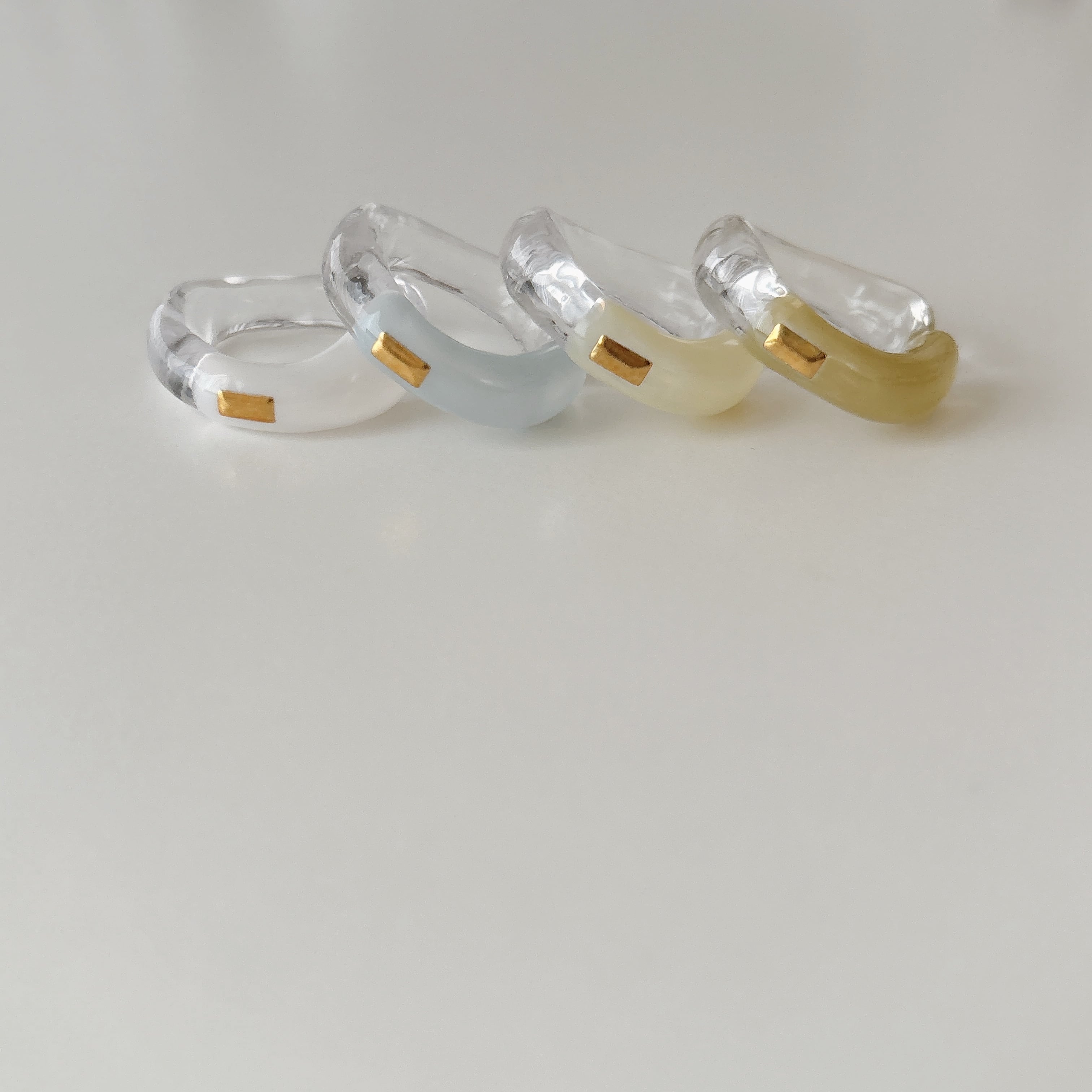 上品なゴールドレクタングルをあしらい、ぽってりとカラーをつけたリングです