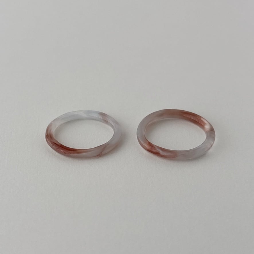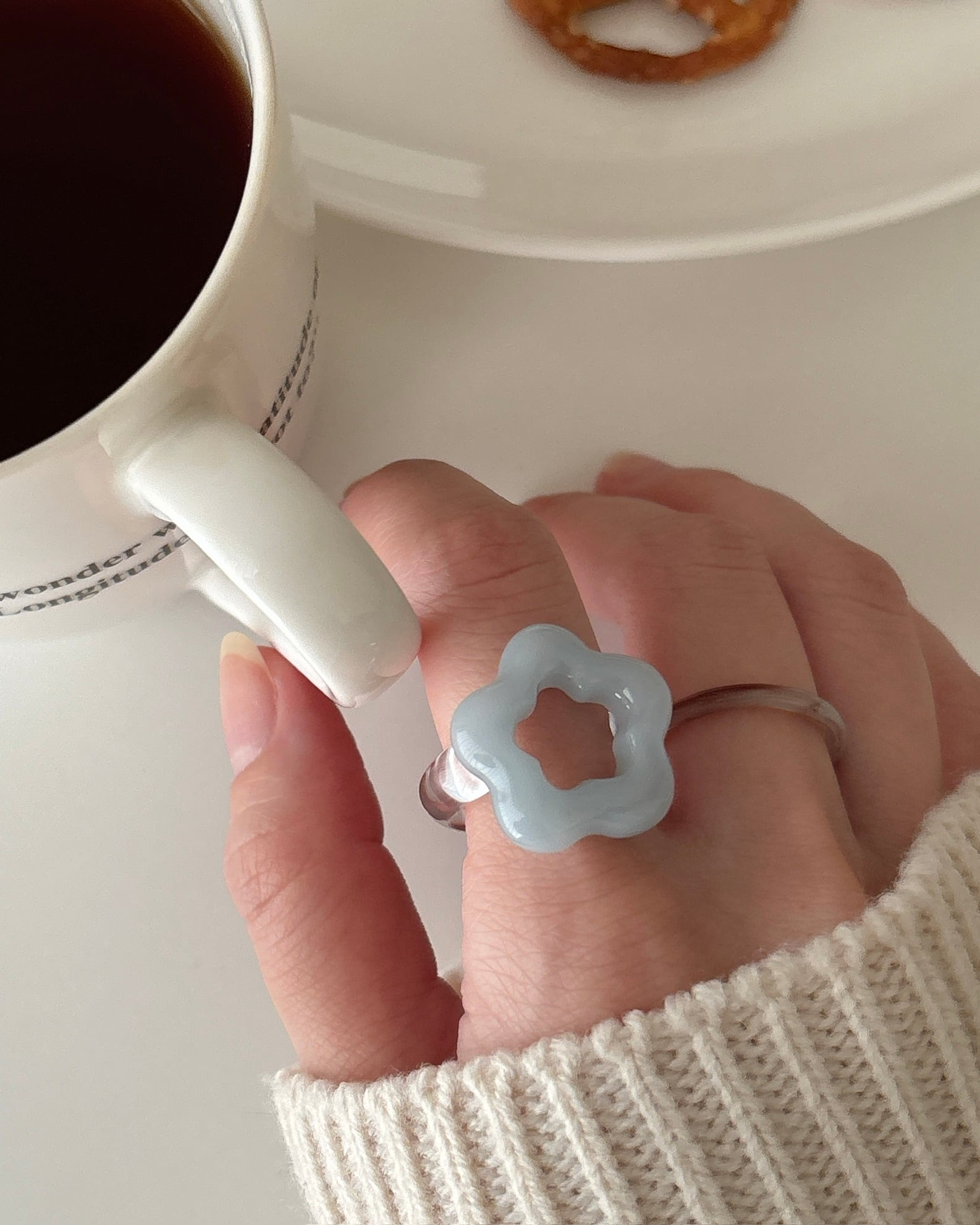 ハートやお花のモチーフリングと合わせやすく、指を綺麗に見せてくれるデザインです