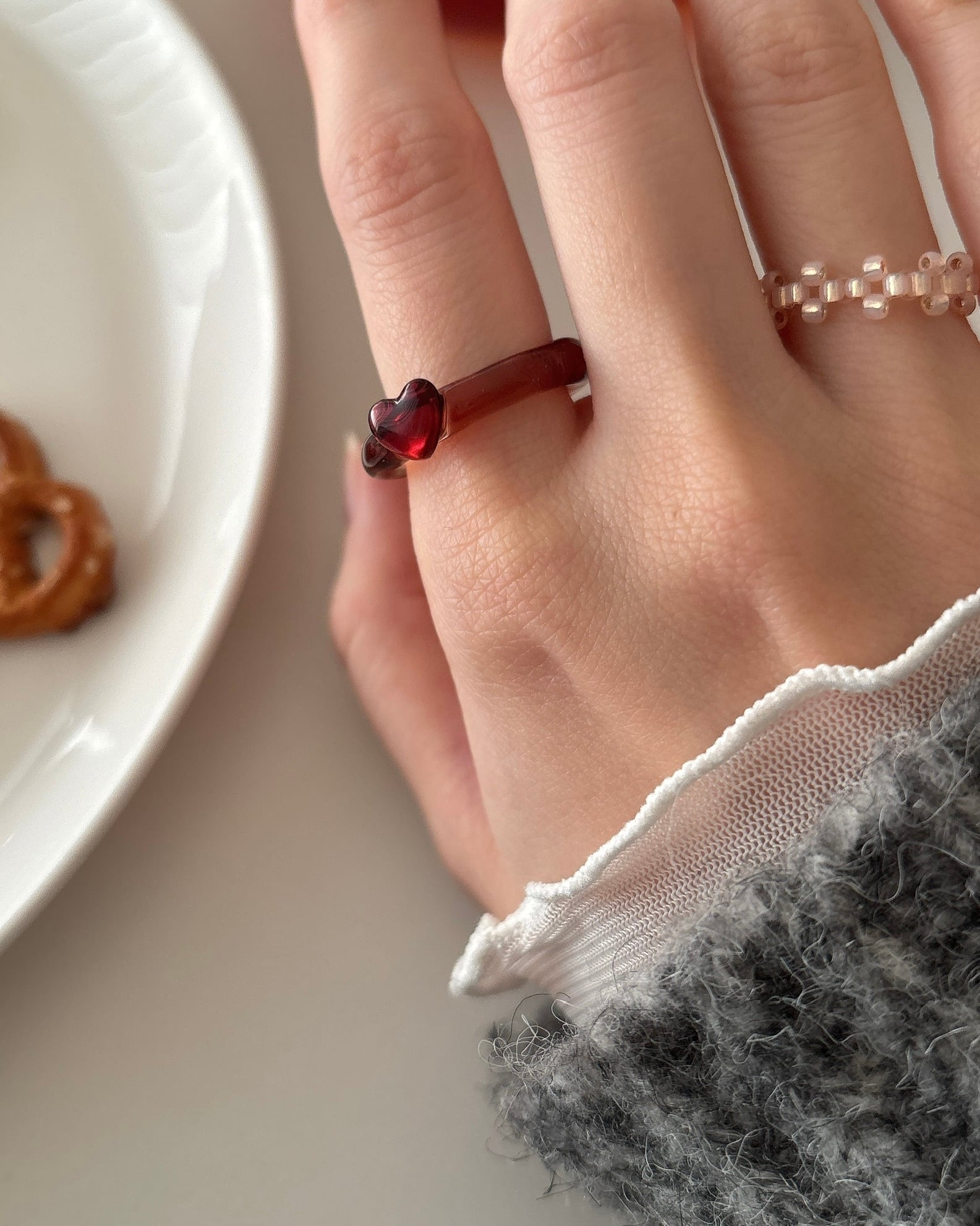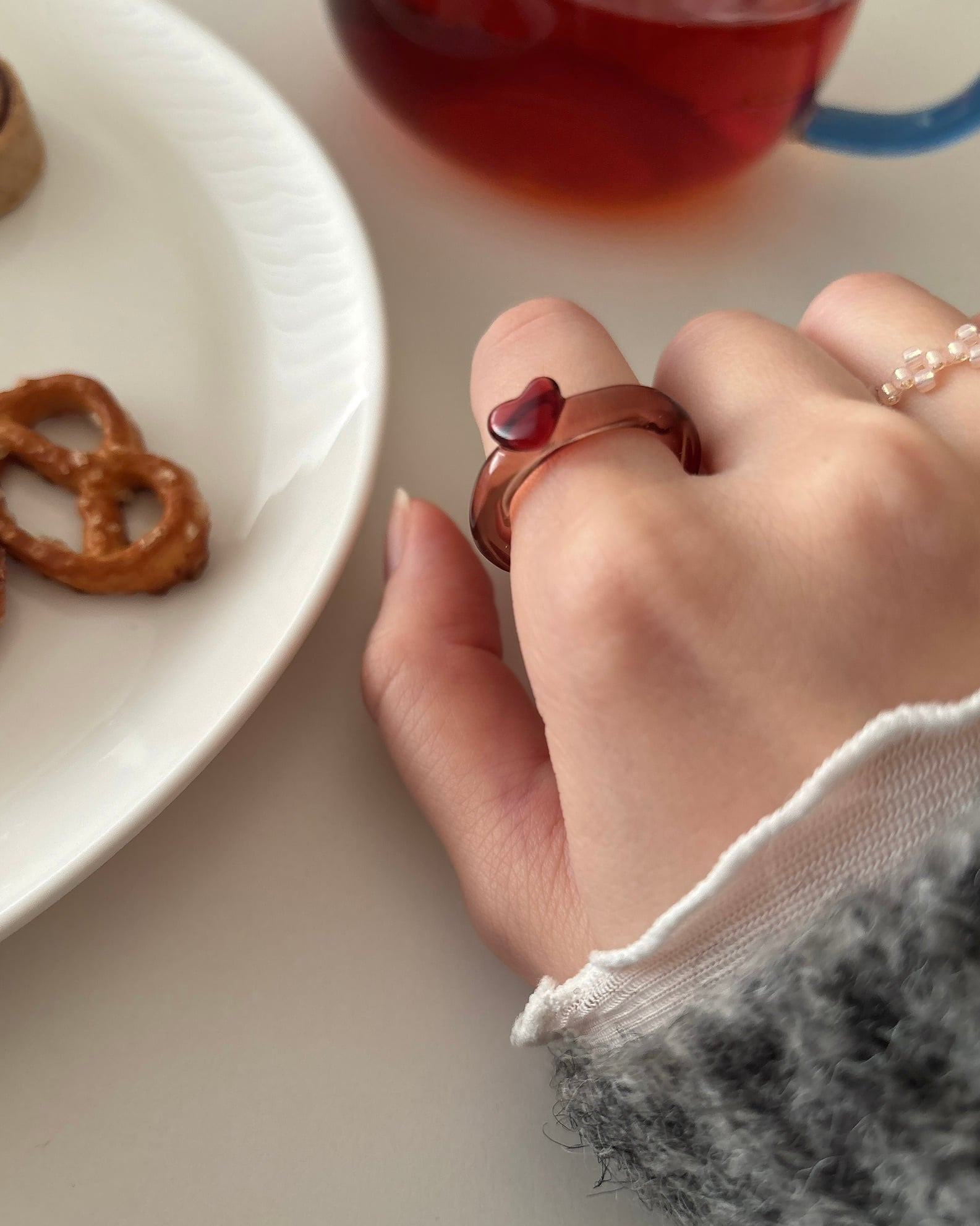 大人が身につけても可愛らしすぎないハートになるように形とサイズ感にこだわりました