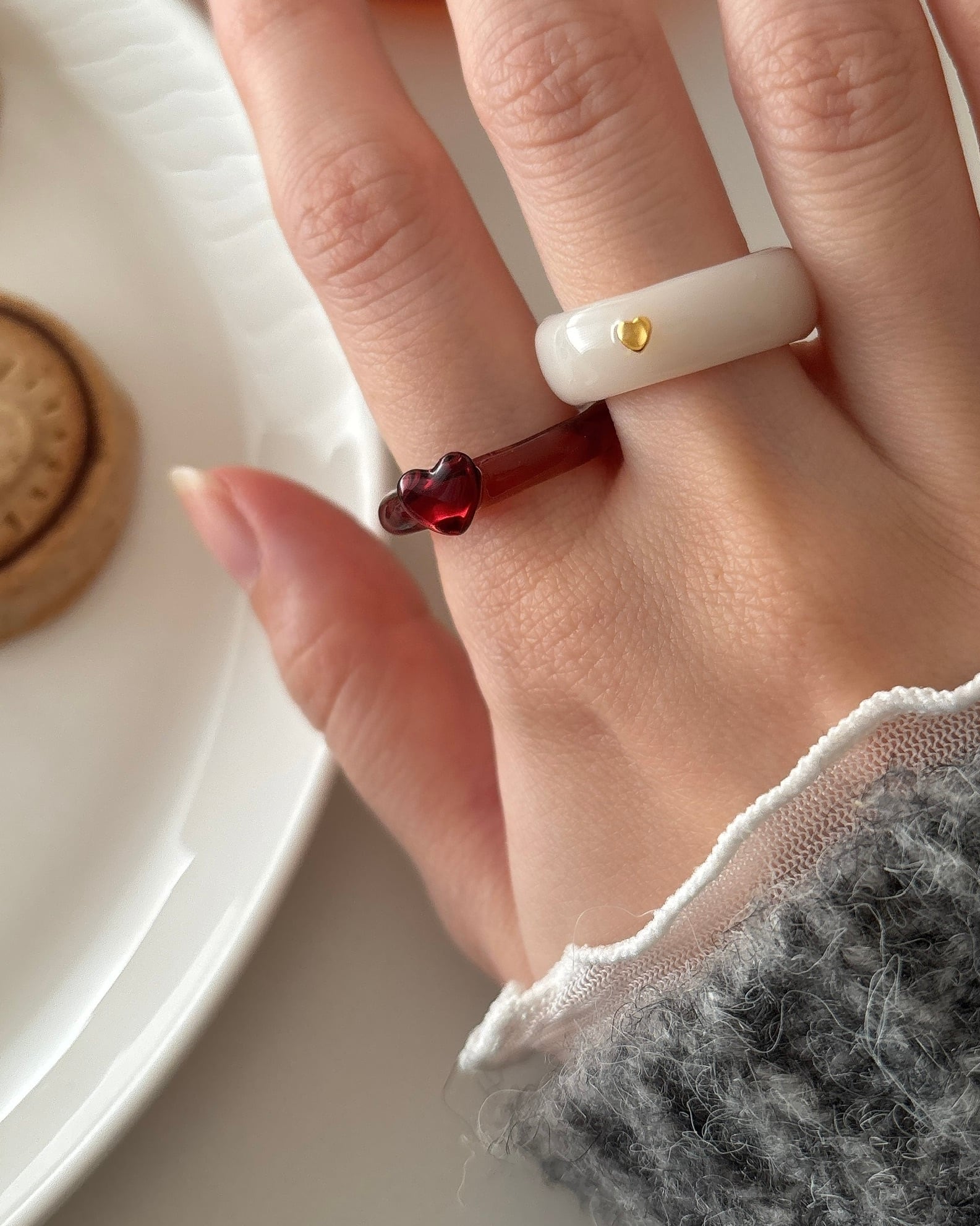 ツートンカラーのシンプルなハートモチーフリング