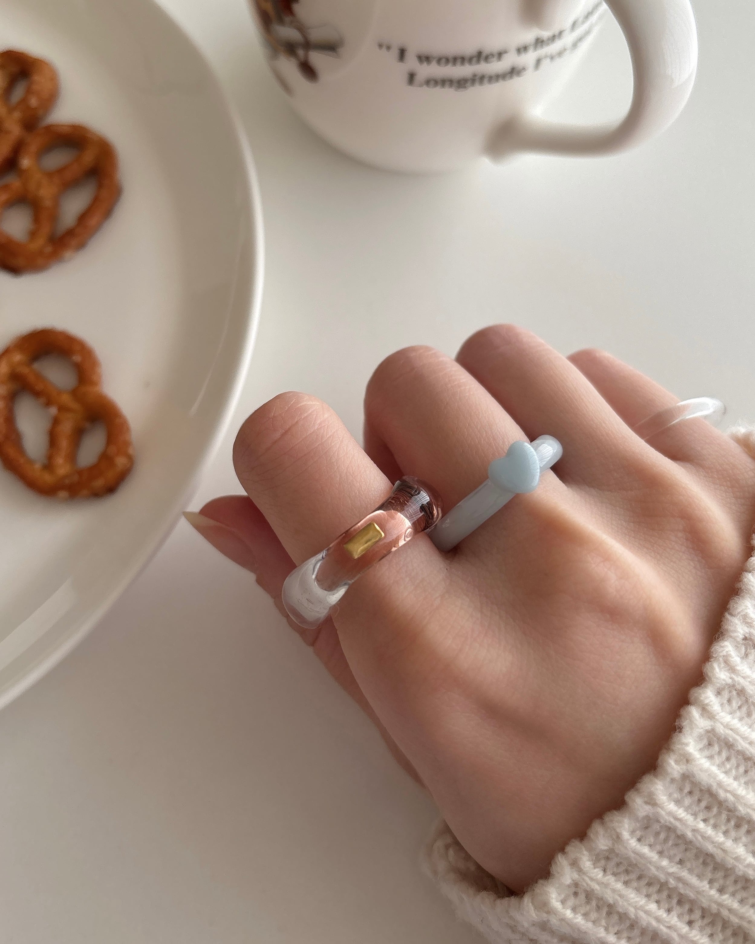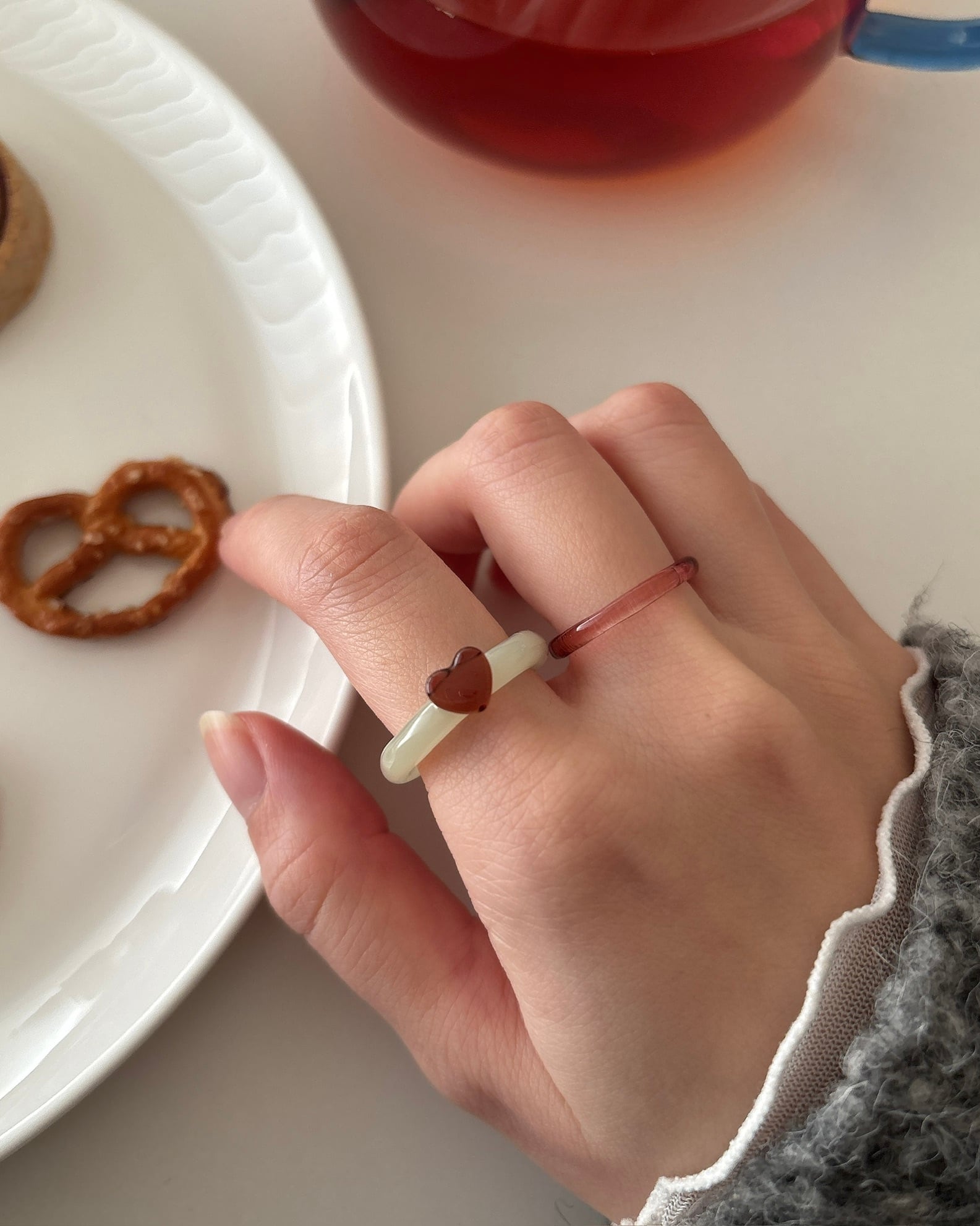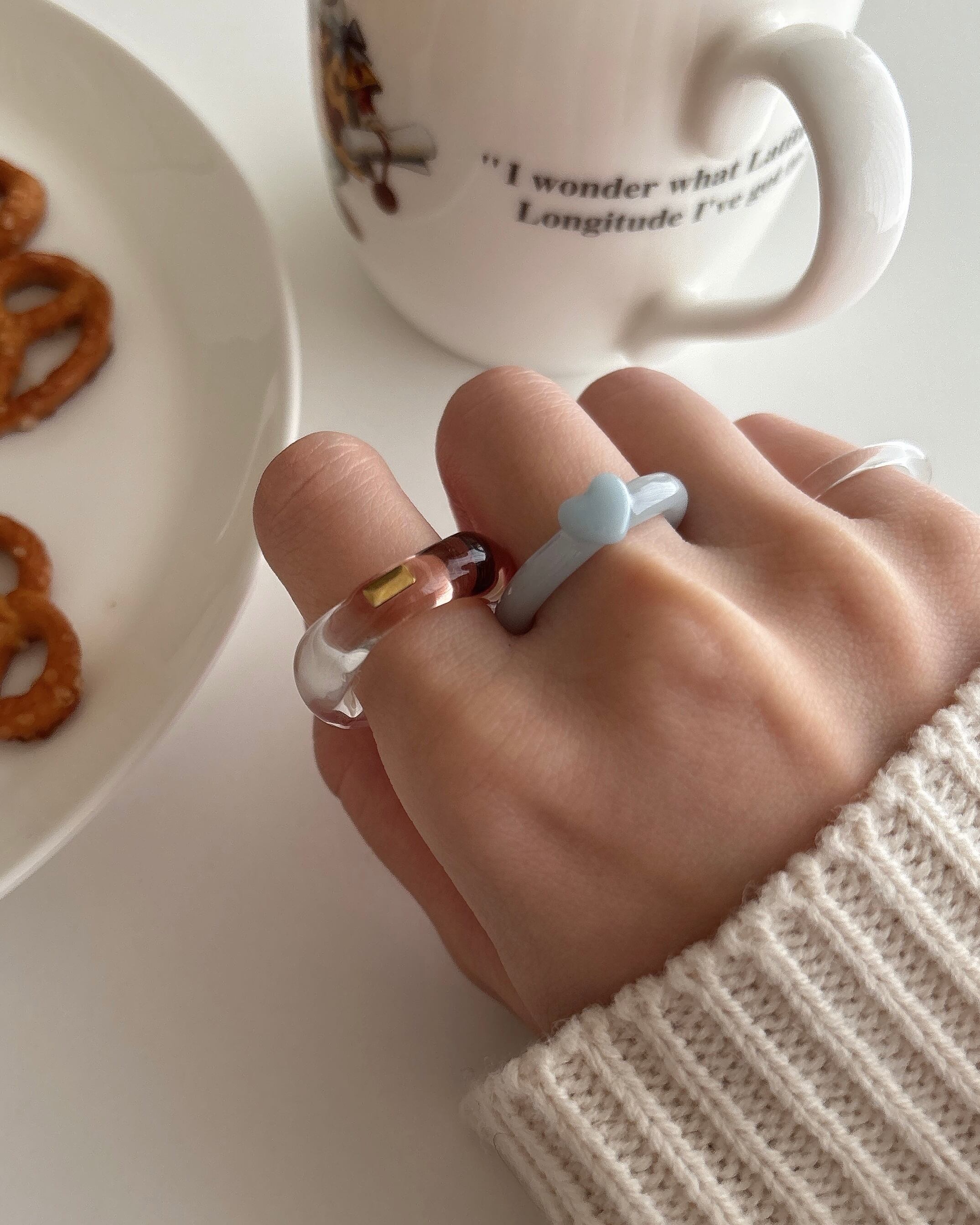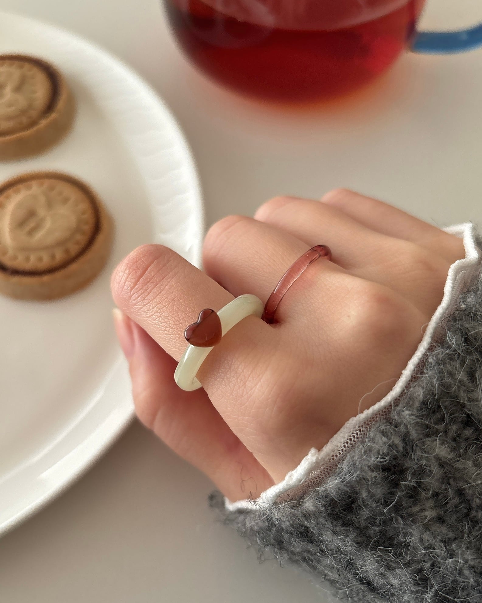 ハートやお花のモチーフリングと合わせやすく、指を綺麗に見せてくれるデザインです