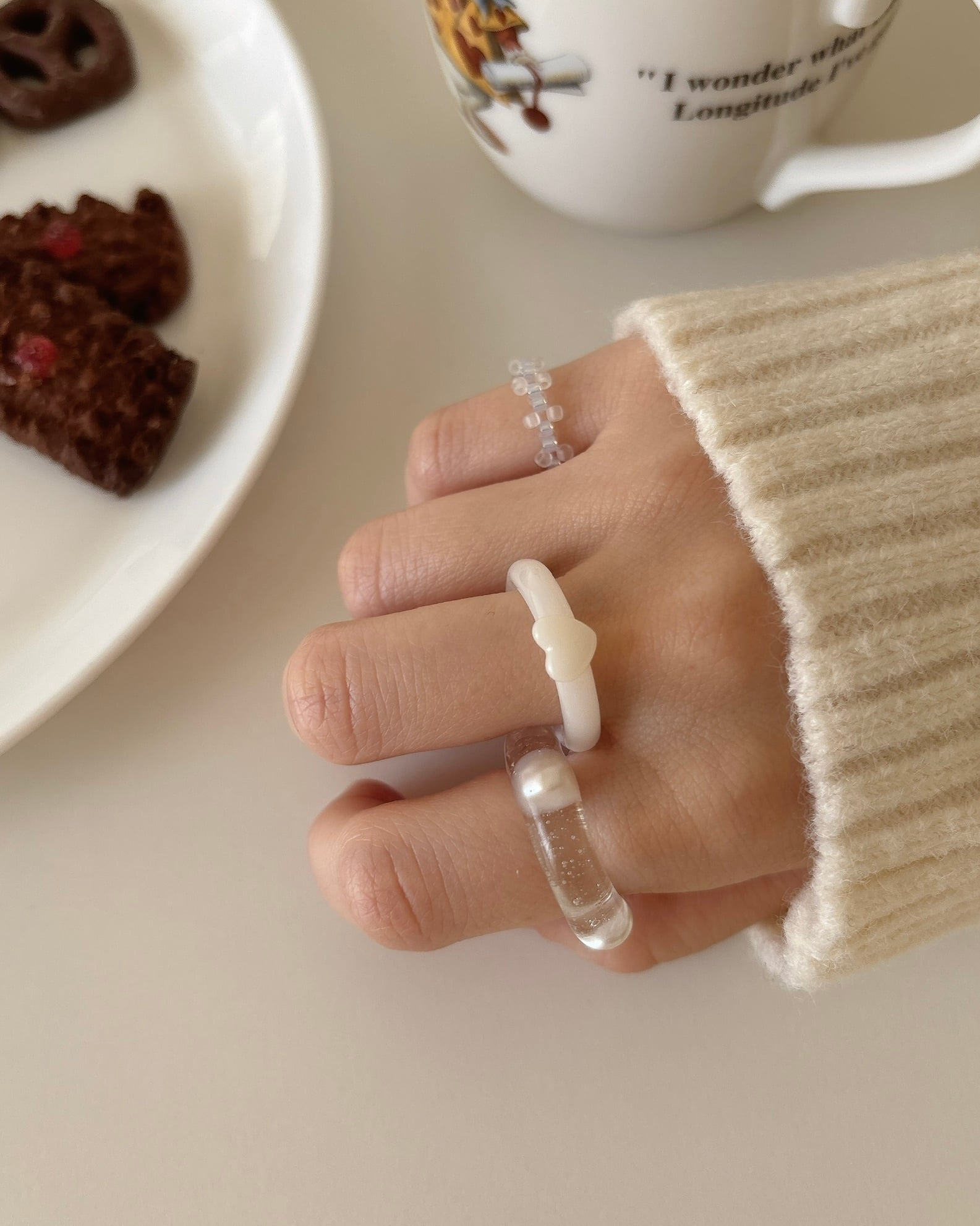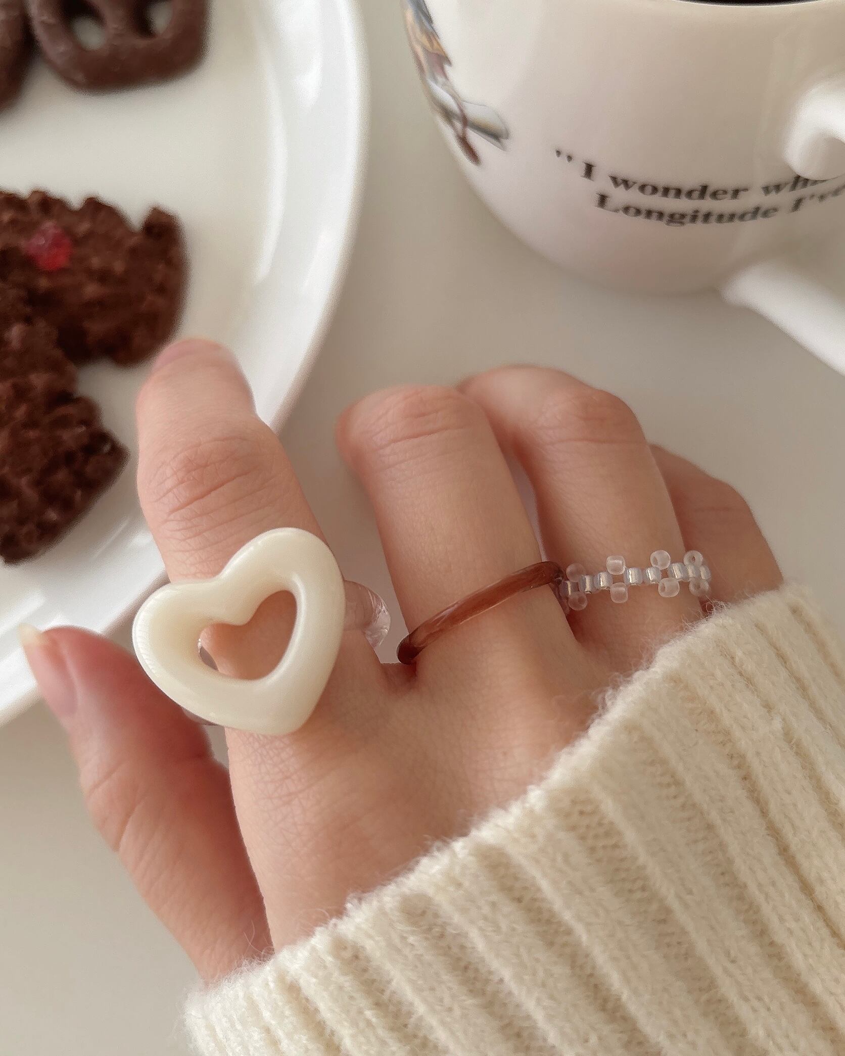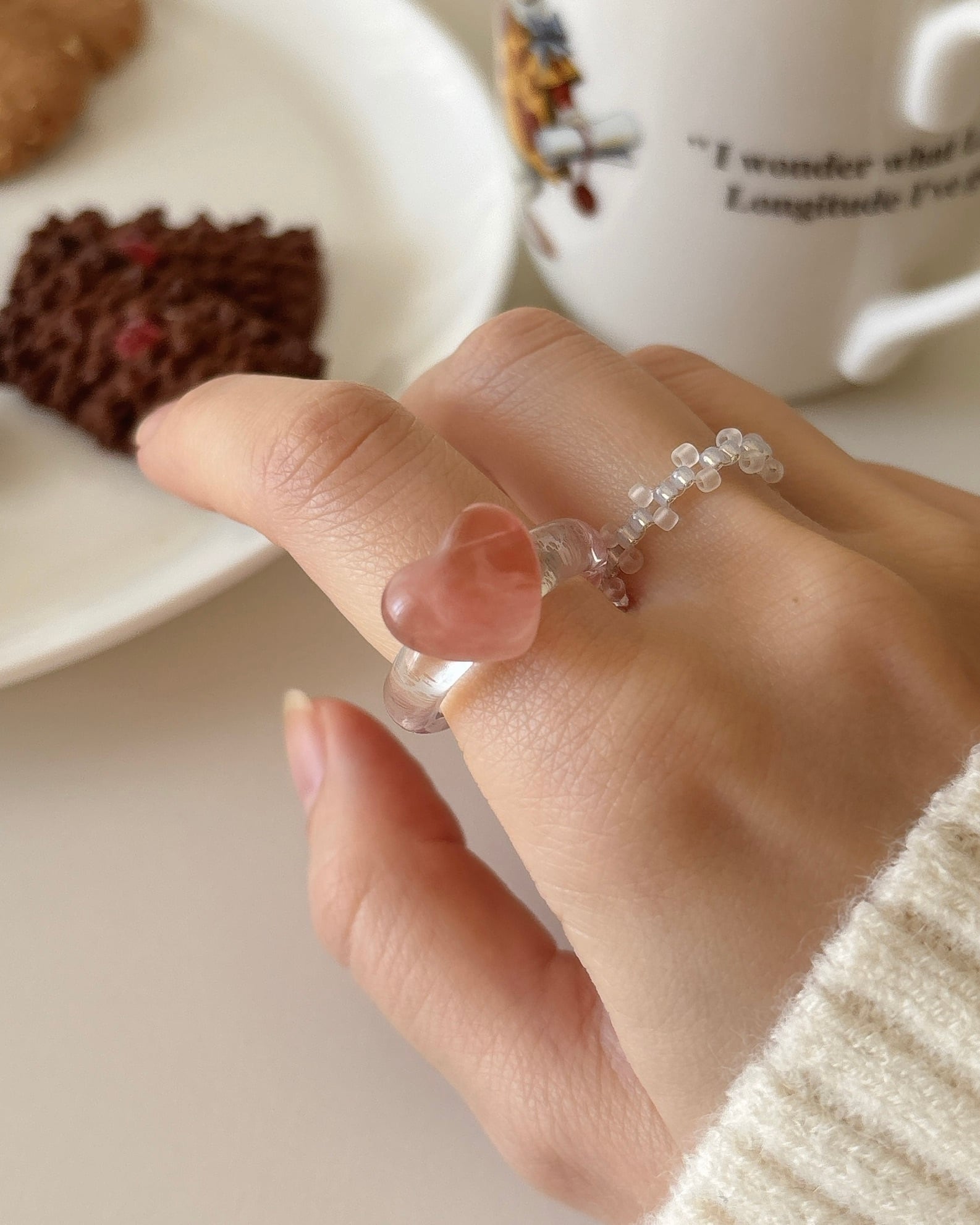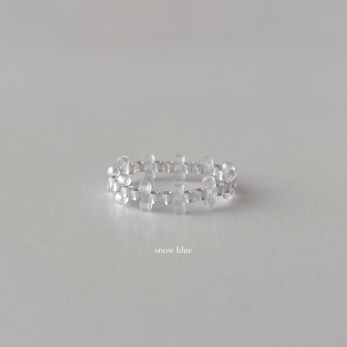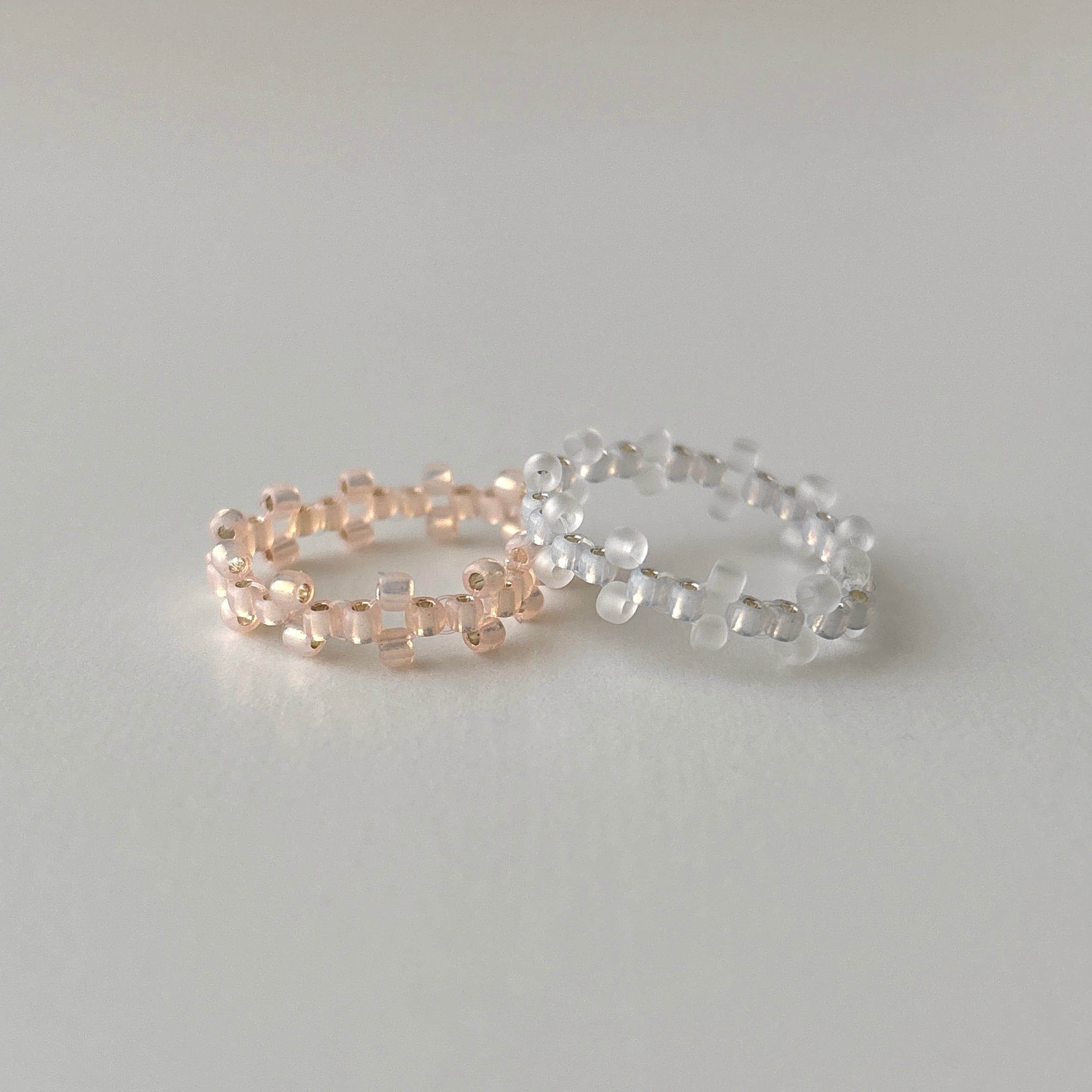 必ず同一メーカーの同一品番ビーズを使用しておりますが、それぞれの大きさに少しずつ個体差があるため、リングとして編み終えた後に多少の誤差が生じてしまいますことをご理解ください