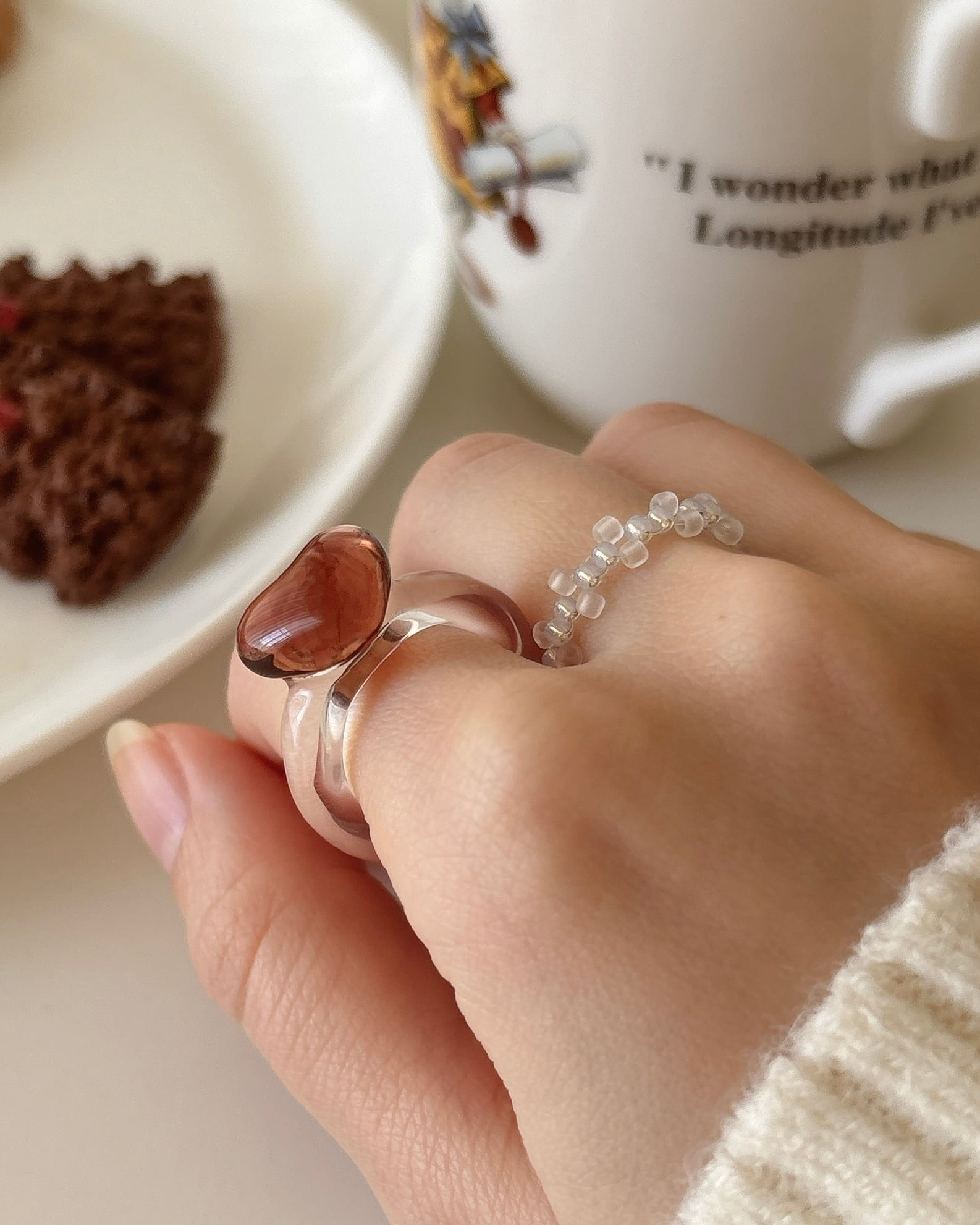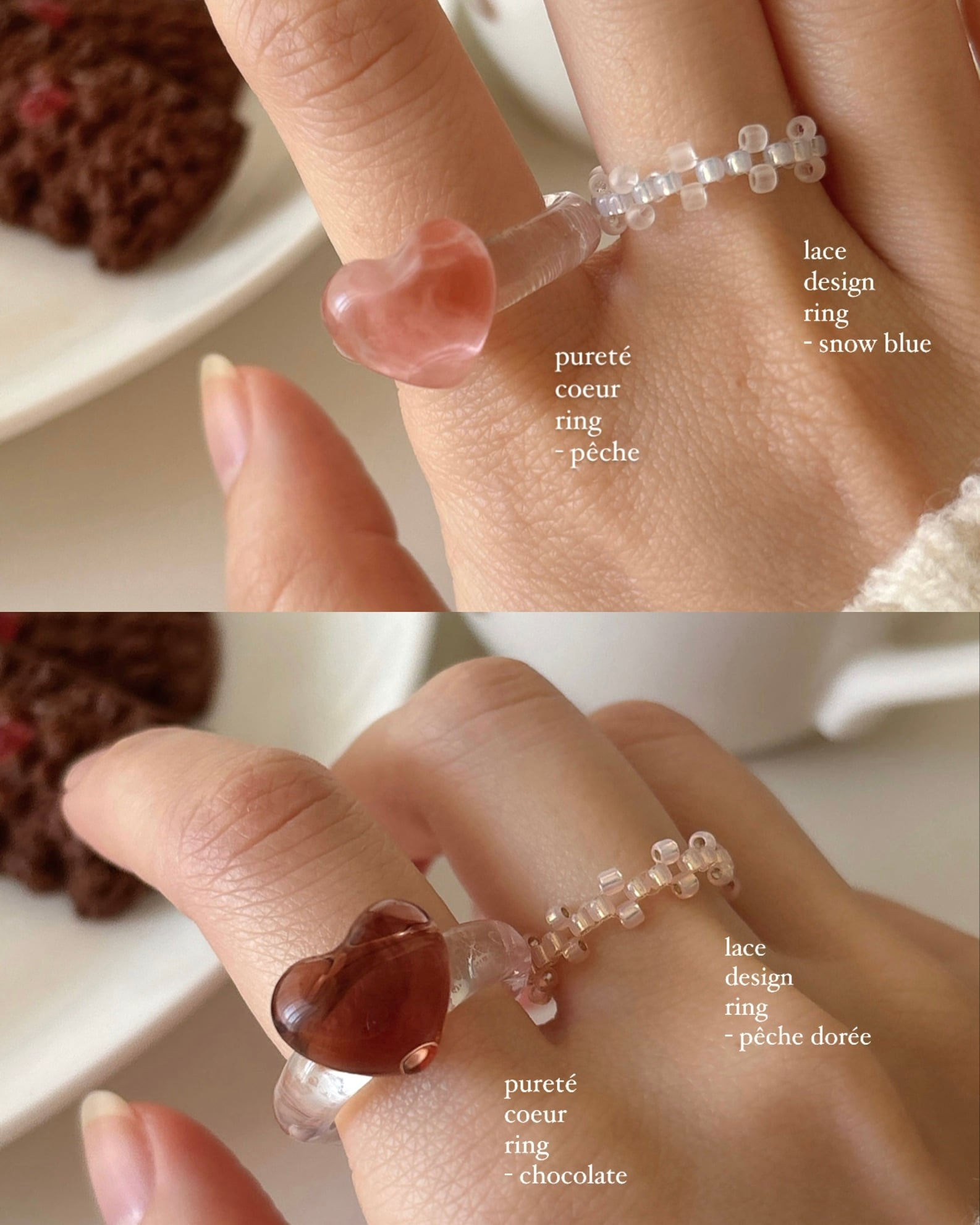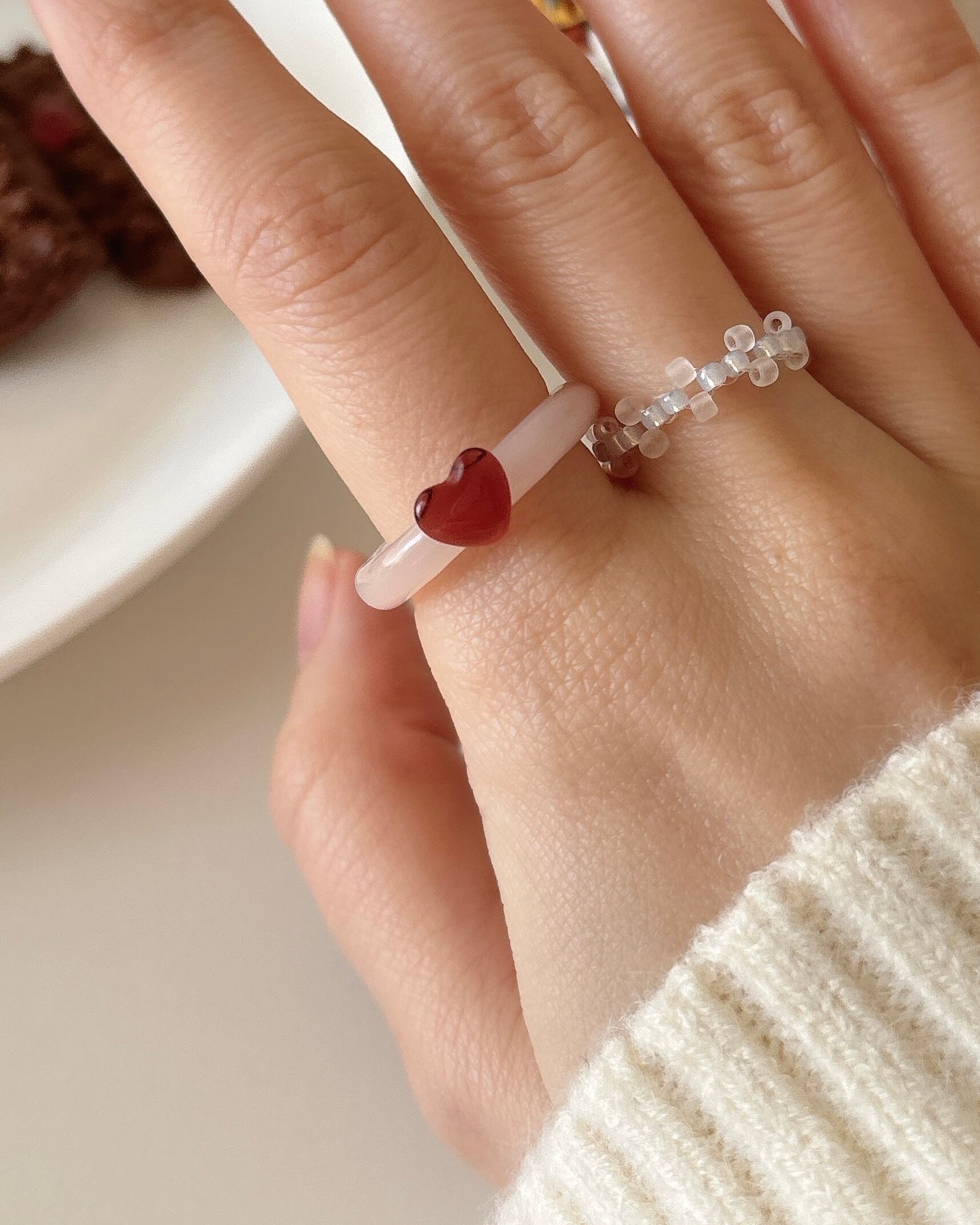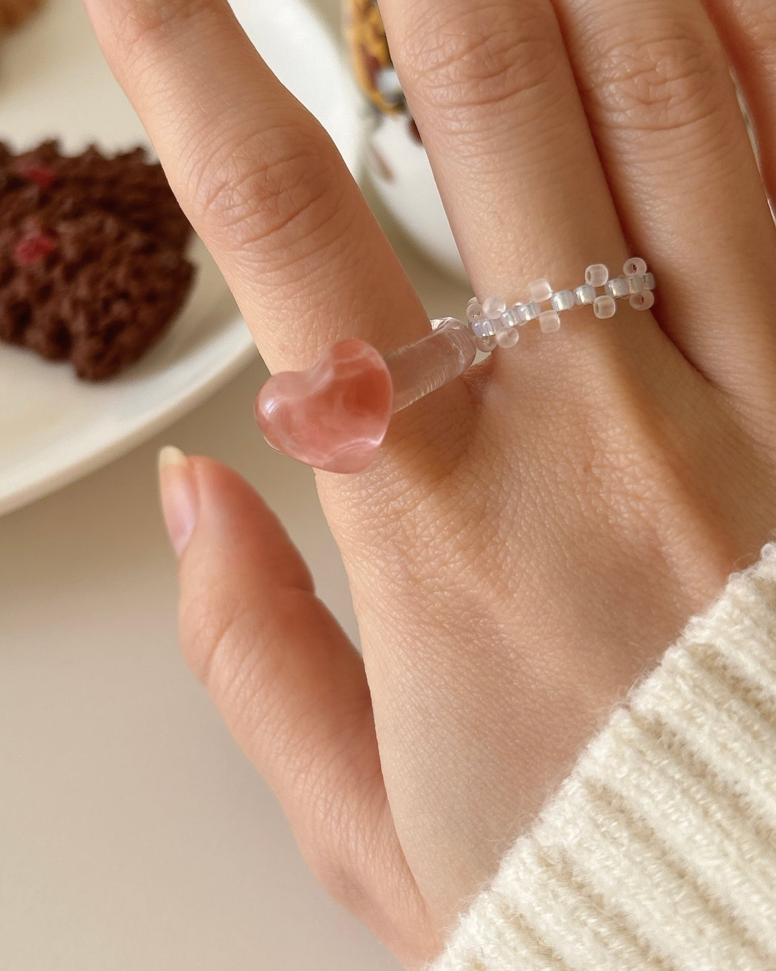 おいしそうな色みをセレクトして編んだガラスビーズのリング