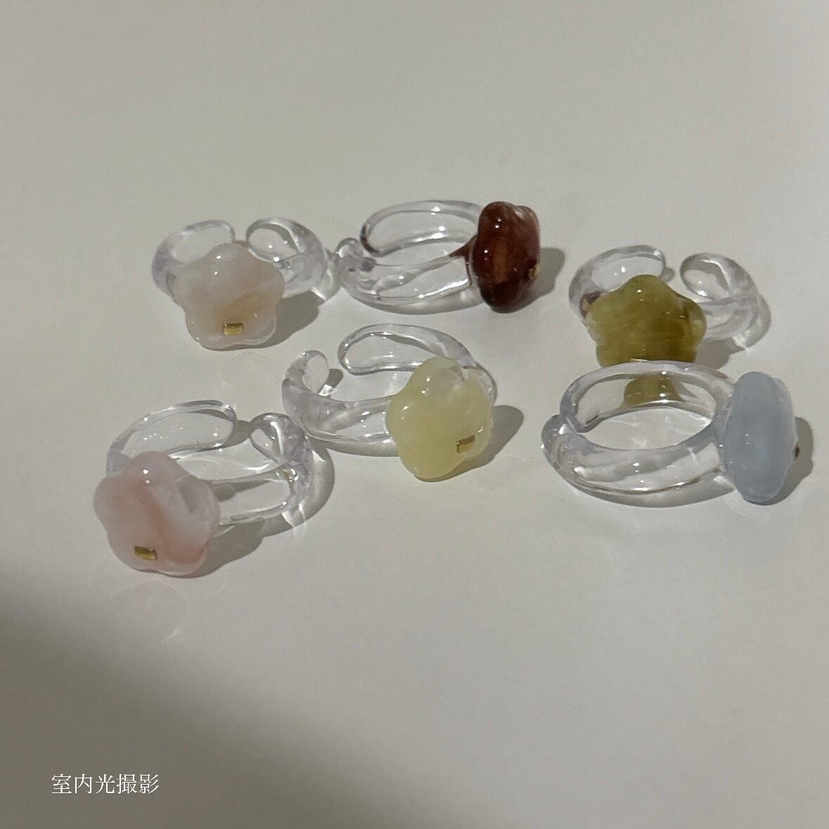 上品なゴールドレクタングルをあしらった、可愛いお花モチーフリング