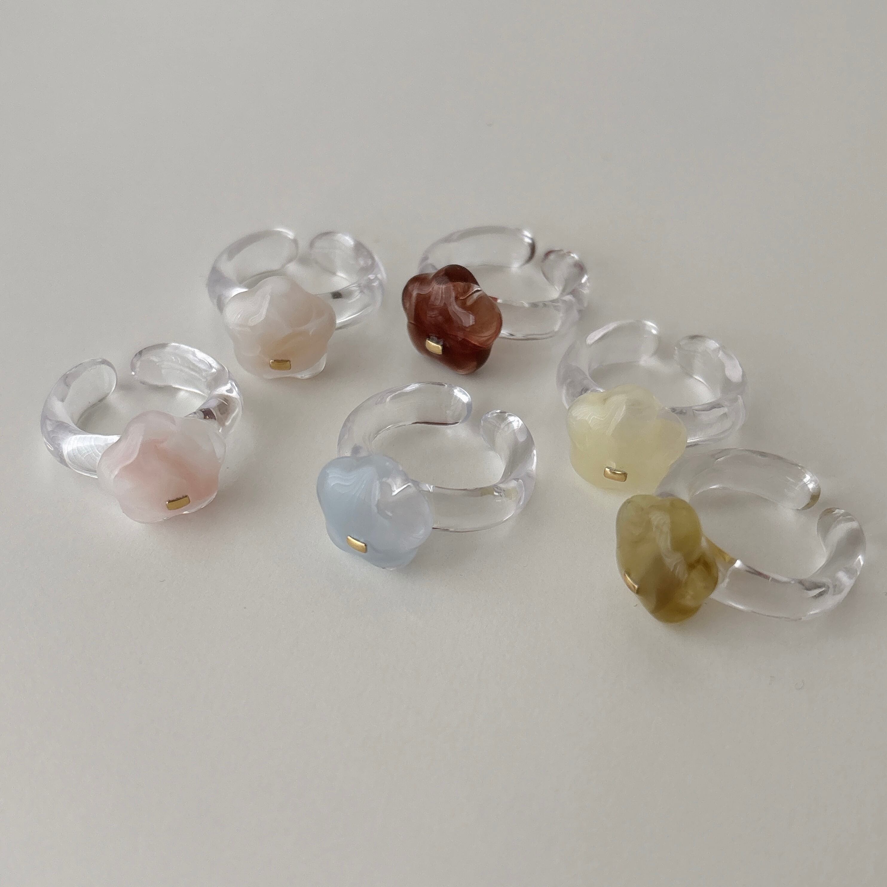 上品なゴールドレクタングルをあしらった、可愛いお花モチーフリング